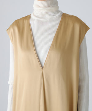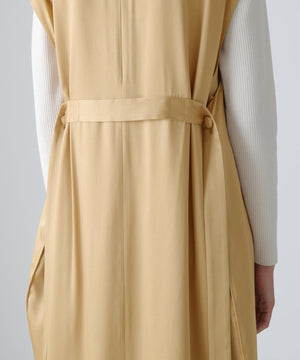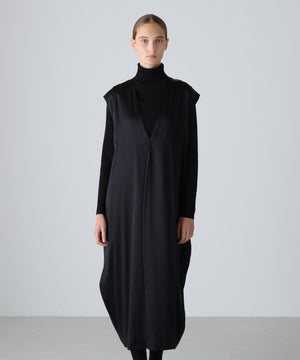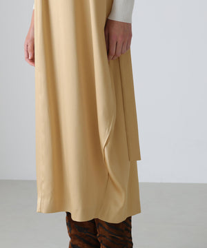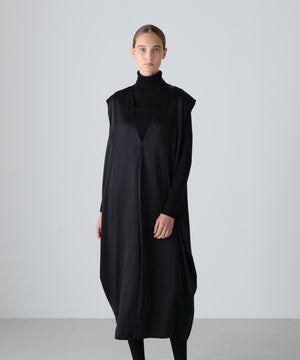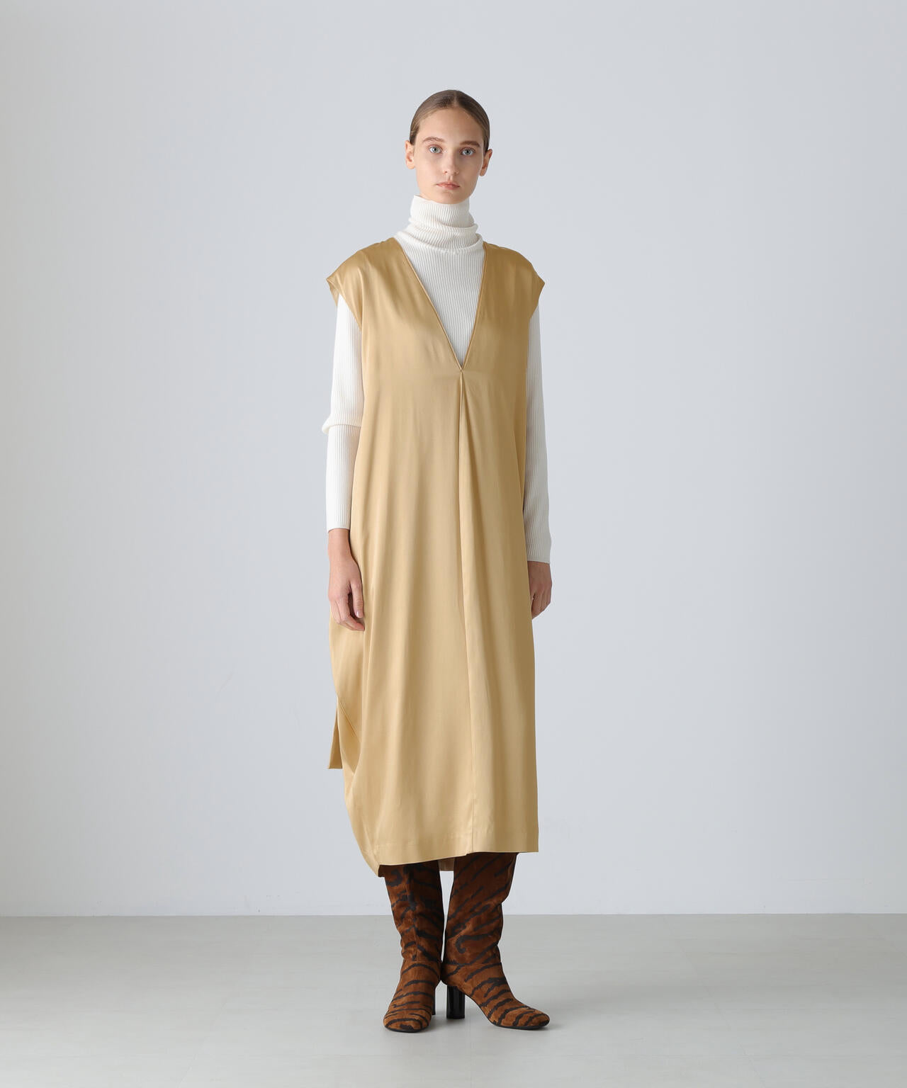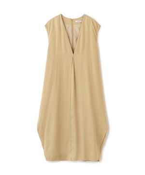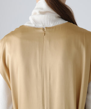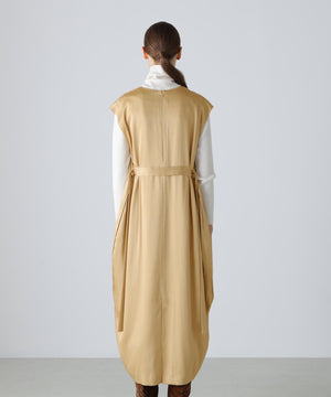 コクーンシルエットが特徴的なブライトサテンワンピース