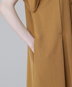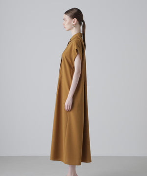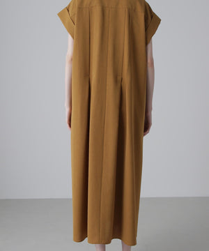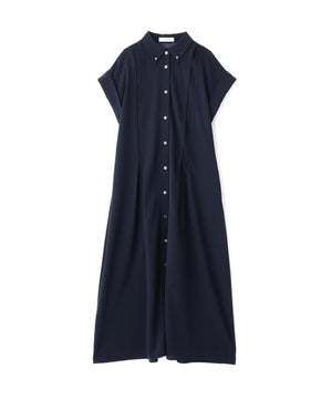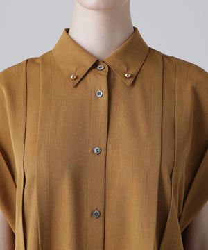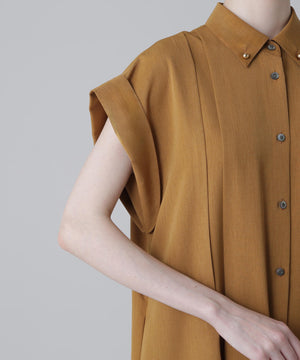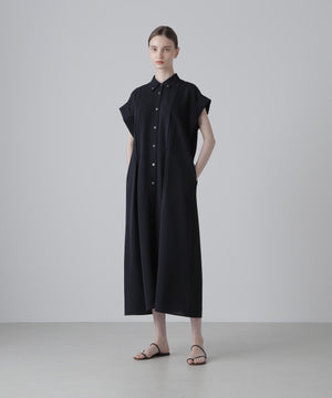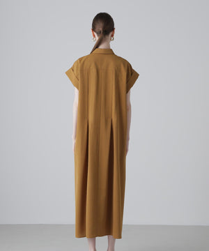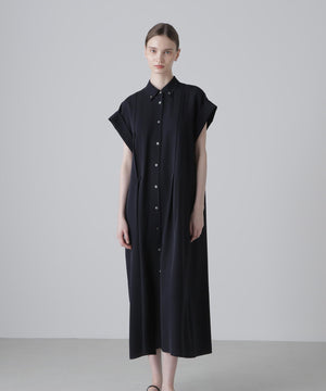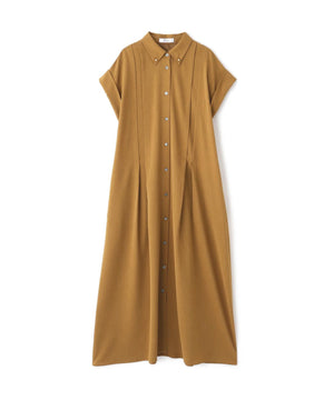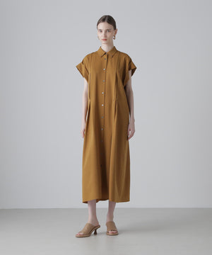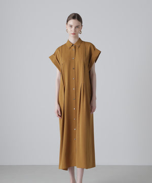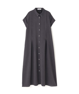 ハーフスリーブのシャツドレスで身頃の部分にタックが入り裾にかけてフレアを出したシルエットになっています。