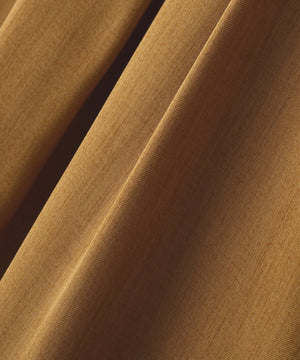 タテ糸にポリエステルの強撚糸とレーヨンの強撚糸を使い、濃淡に染めることで生地に特有の表情を持たせた、ドレープ性にとんださらりとドライなツイル素材で仕立てました。