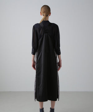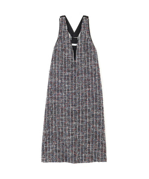 ストレートシルエットのドレスで深めに空いたVネックがポイント。