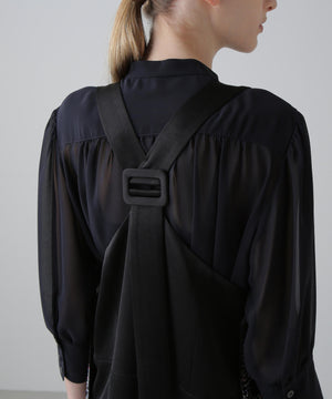 バック部分は上部がサテン素材でY型のベルトデザインが特徴です。