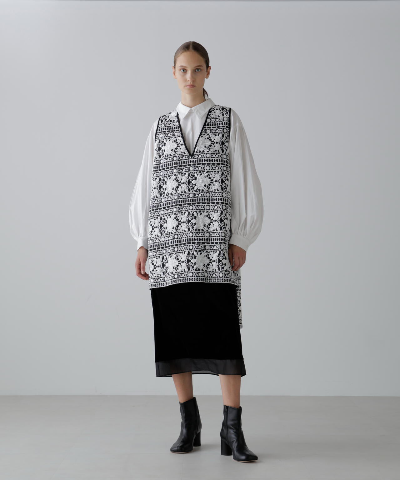 アーカイブレースを使用したエクスクルーシブなドレスです。