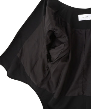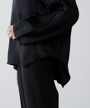 光沢感のあるアセテート・レーヨンフィラメント糸を使用し、高密度に肉感をもたせて織った、ドレープ性にとんだ二重織サテン素材で仕立てました。