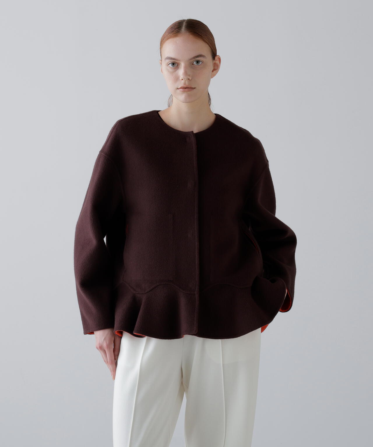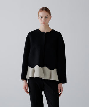 ペプラムデザインが特徴的なカシミア混2TONEリバージャケット