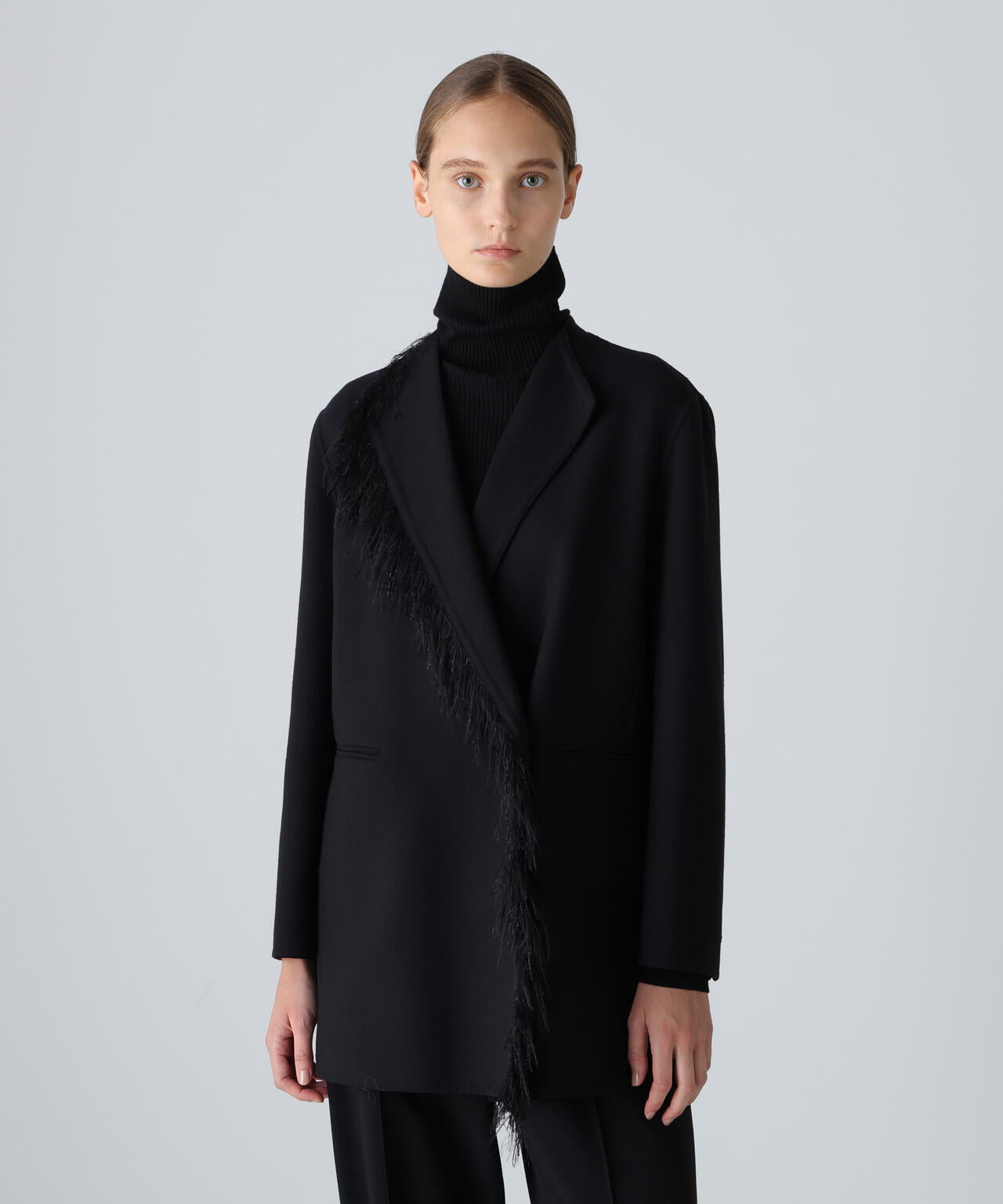 フリンジ使いが印象的なコンパクトウールリバージャケット