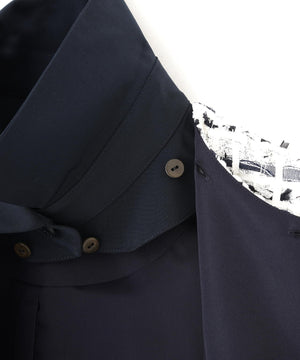 太くまあるいモール糸とデニム調の生地をテープ状にカットした特殊なテープを大胆に使用し、ざっくりと織り上げたツイード素材で仕立てました。