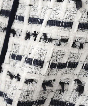 ADOREオリジナルの色落ちしないデニムテープを織り込んだ、特別感のあるツィードです。