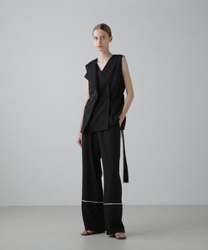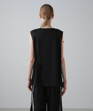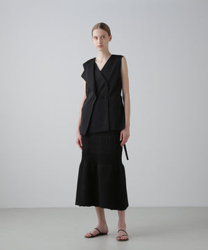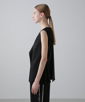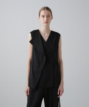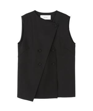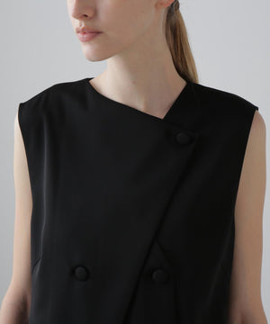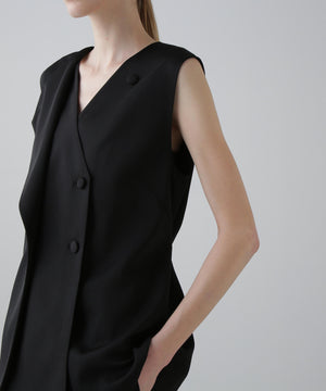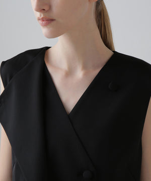 落ち感のある合繊素材を使用したキレイ目のジレ。