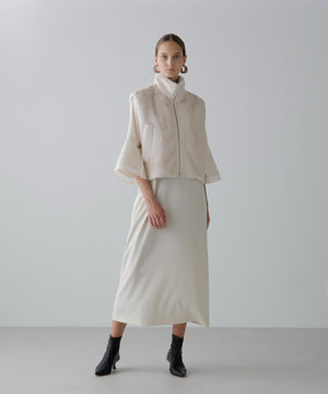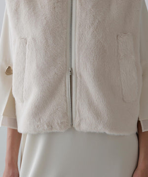 上品な光沢のあるフェイクファーのベストです。