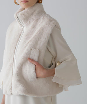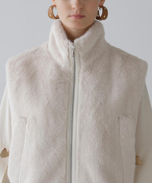 リュクスな光沢が魅力、柔らかなフェイクファーベスト