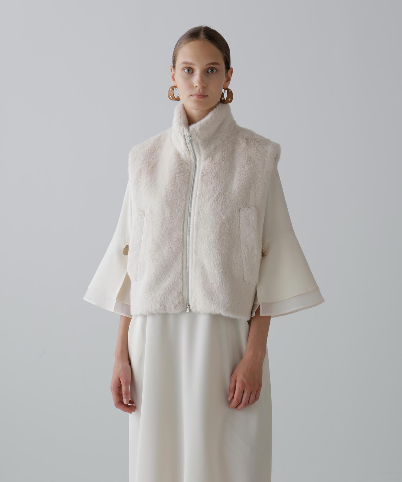 密度感があり、ボリュームと柔らかなタッチが特徴なフェイクファー素材で仕立てました。