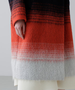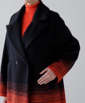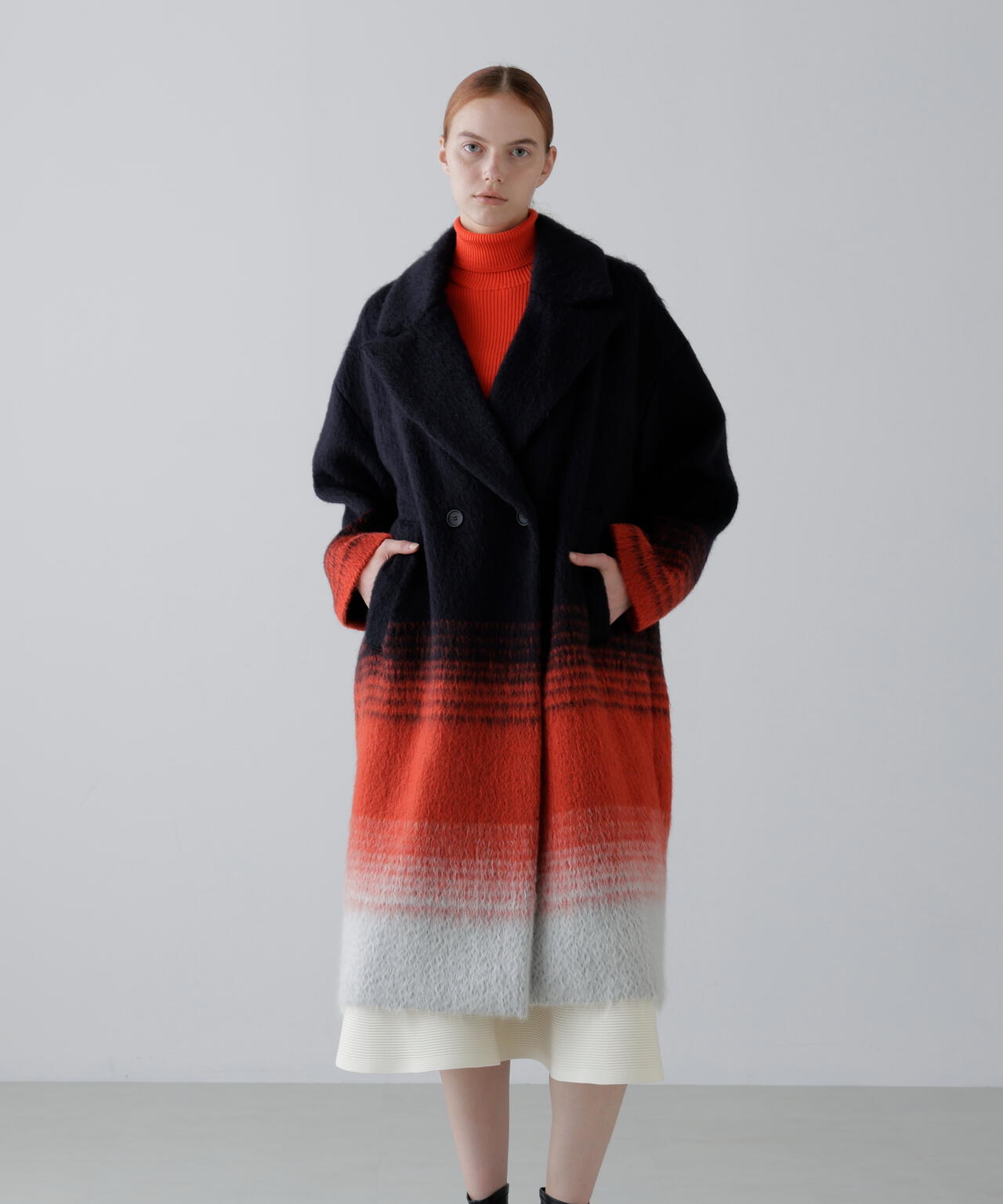 ビッグラペルが特徴のコートで繊細なシャギー感とグラデーションカラーが華やかさを演出します。