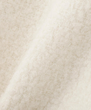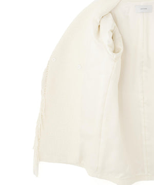 リング状の糸を使用したツイード素材で、生地の工程の中でフリンジを混ぜ込んだ特殊な設計のコートです。