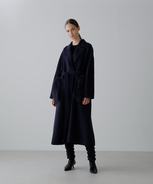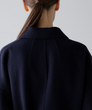 定番のダブルフェイスのソリッドウール素材で1枚仕立てで仕上げられたコートです。