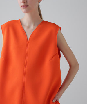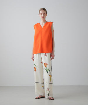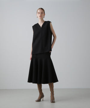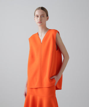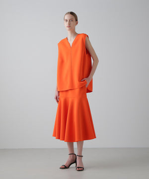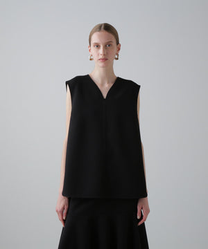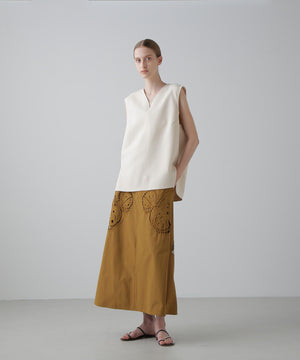 ネックと裾のサイド部分がラウンドカットになっています。同素材スカート(品番:531-5220810)とセットアップが可能。