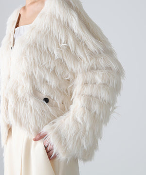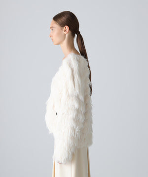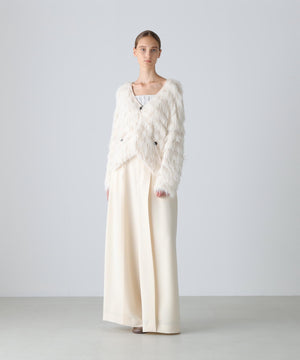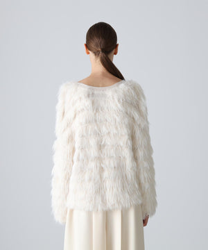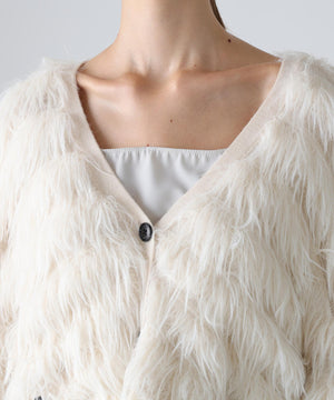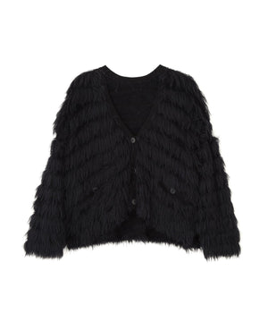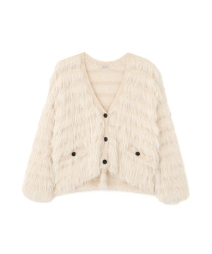 毛足の長いロングシャギーの糸を使用したニットカーディガンです。