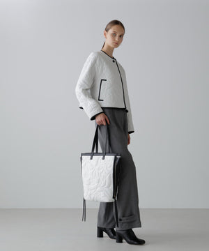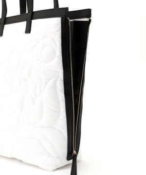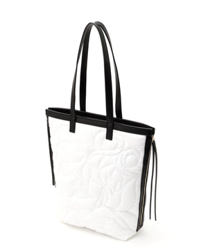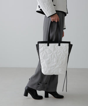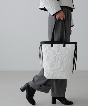 オリジナル柄をステッチで描いたキルティングトート。
