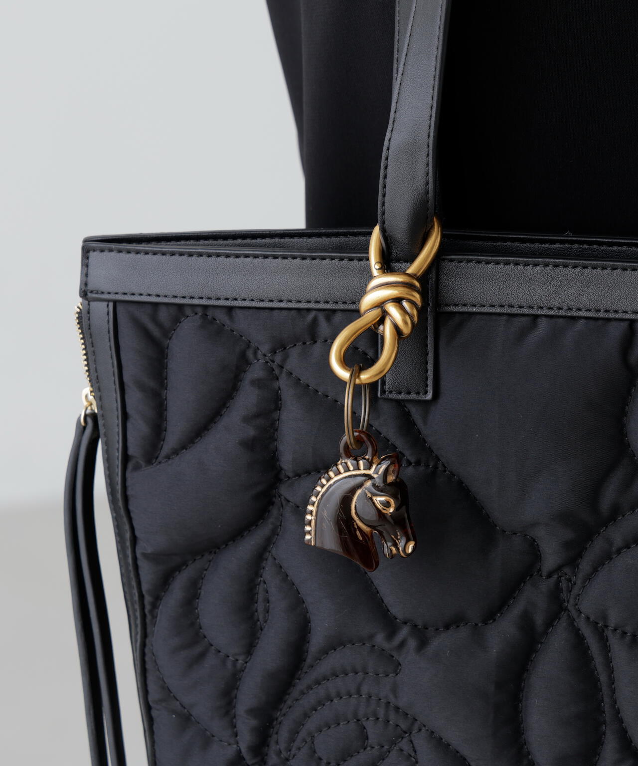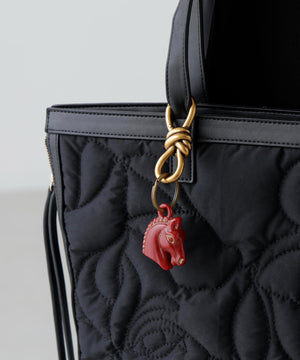 イタリアのMABELというアクリルパーツメーカーの馬のパーツにノットディテールのカラビナをドッキングしたキーチェーンです。