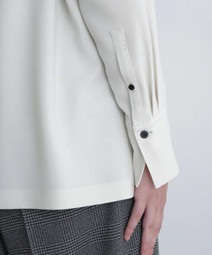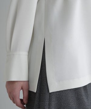 グレンチェック柄のスッキリとした表面感が特徴の素材と合繊素材を使用したブラウス。