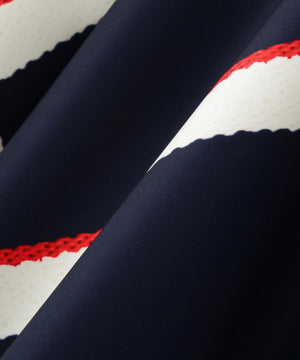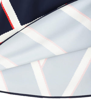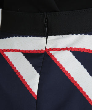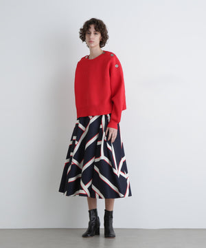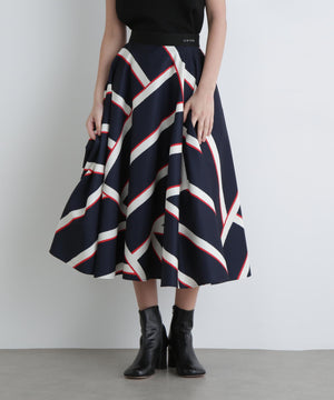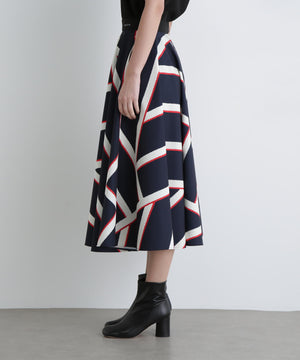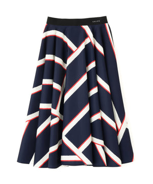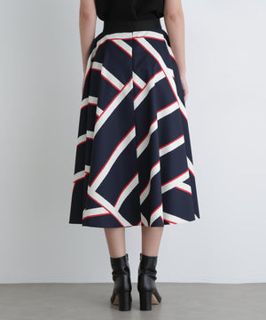 レジメンタルタイの柄をモチーフに幾何学模様にアレンジしたプリントスカート。