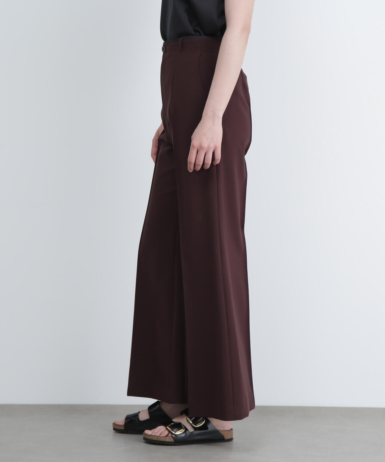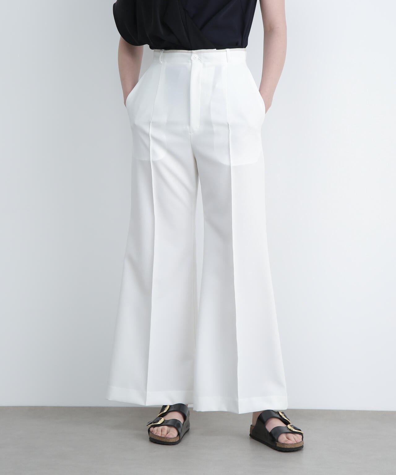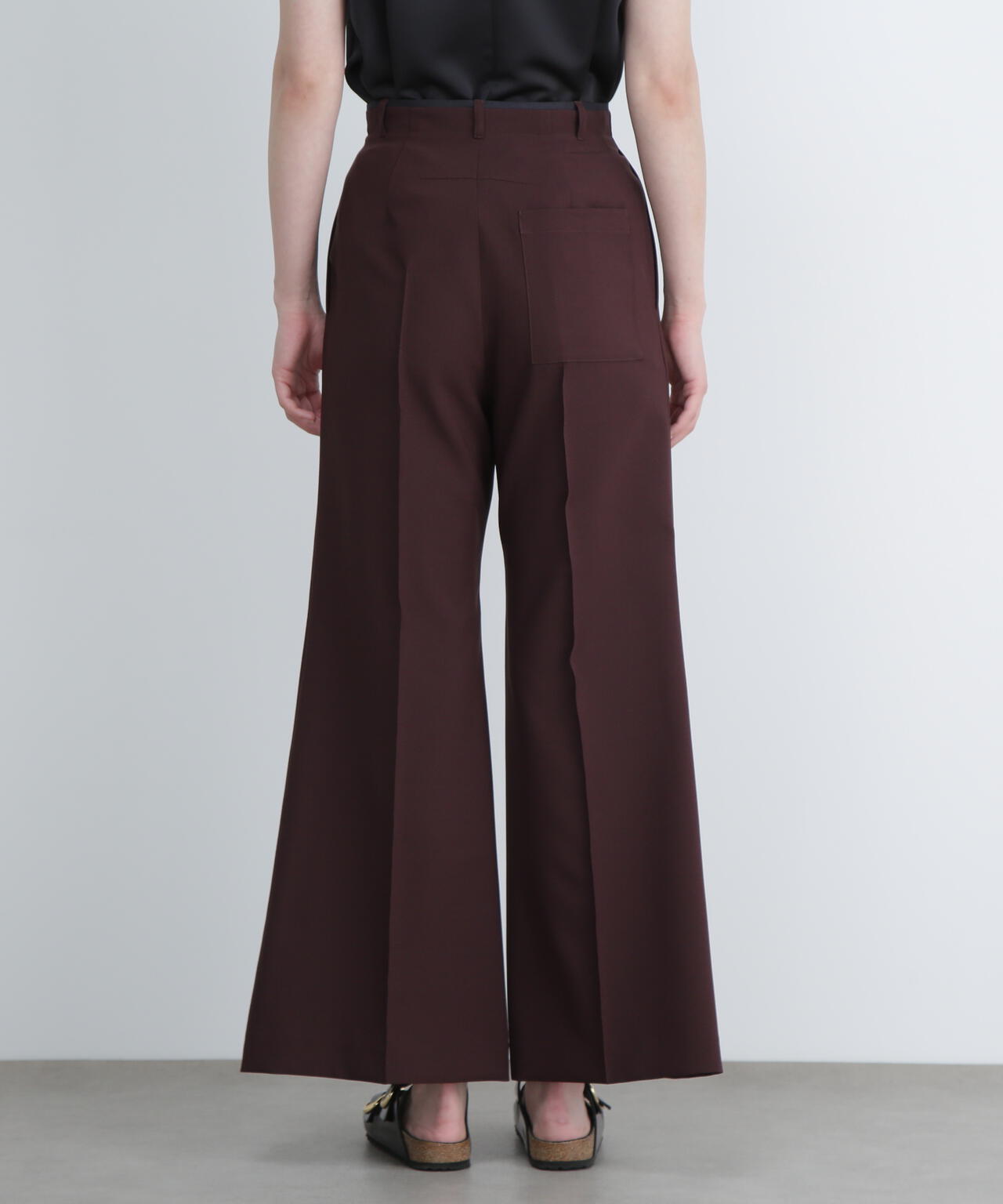 バランスの良い細すぎないフレアパンツに。同素材ジレ(品番:531-5950670)とセットアップが可能です。