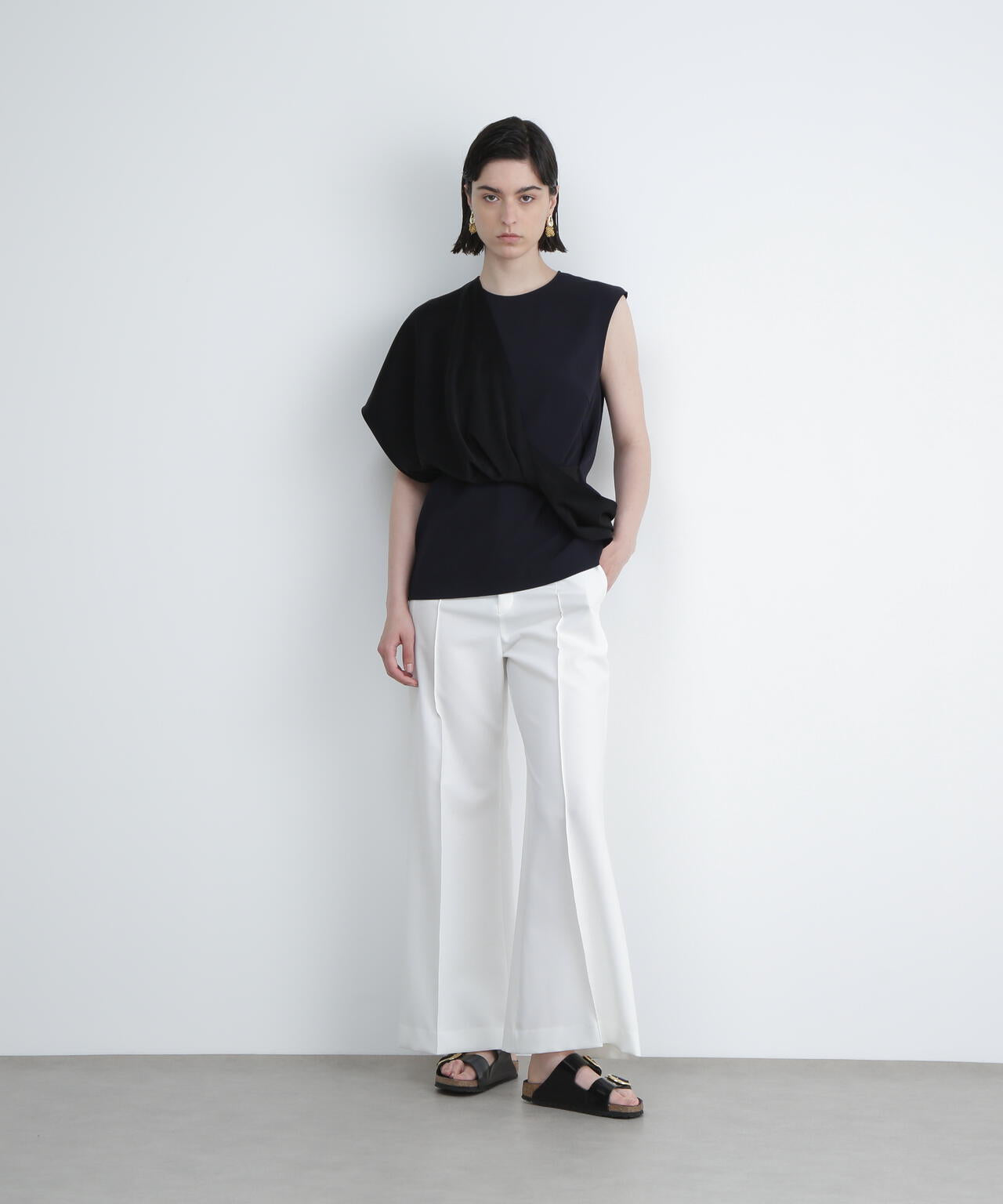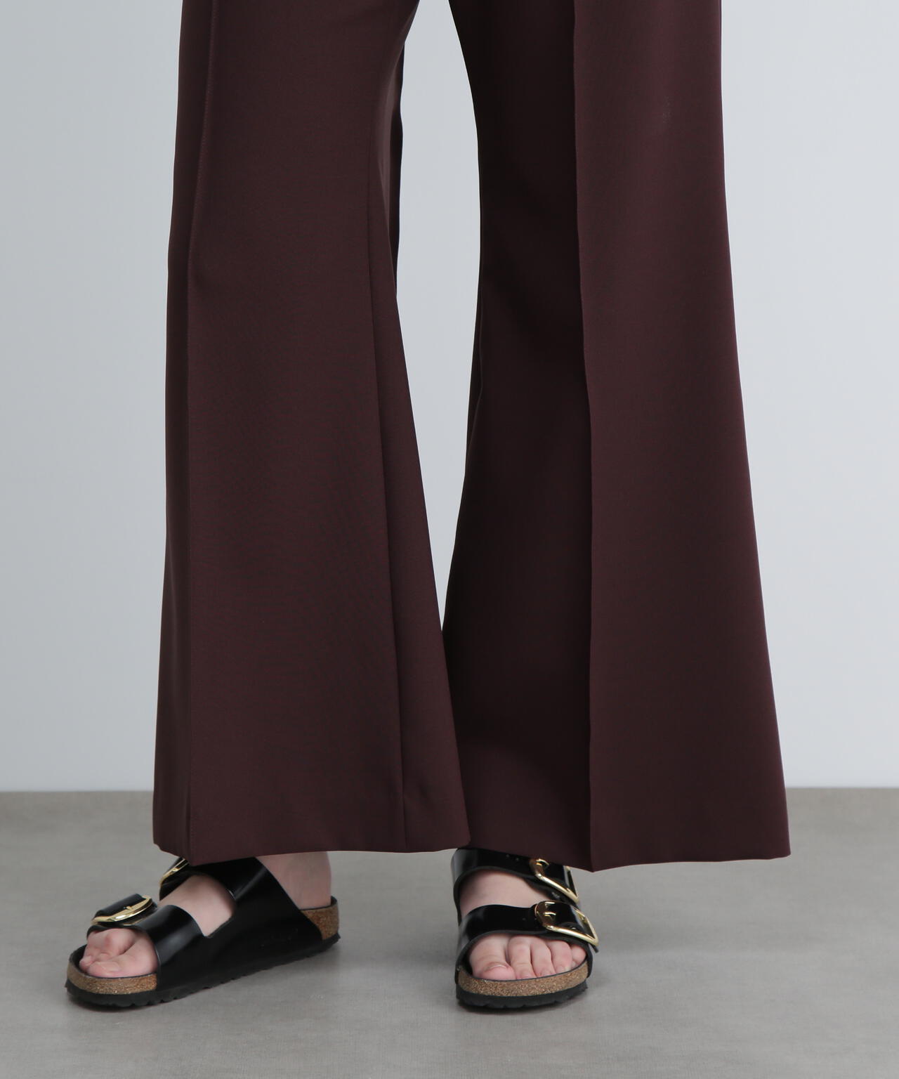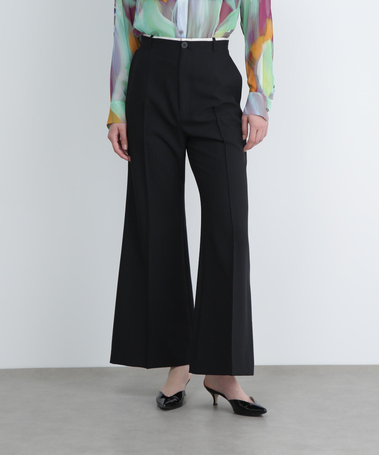 バランスの良い細すぎないフレアパンツに。同素材ジレ(品番:531-5950670)とセットアップが可能です。