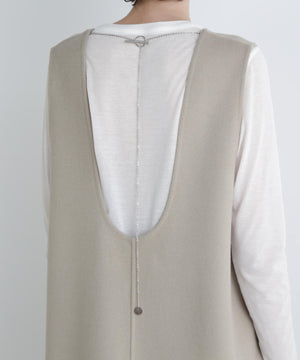 丁寧に手縫いで仕上げられた上品な縫製のドレスで、バックネック分部にチェーンアクセサリーがついています。(取り外し可)
