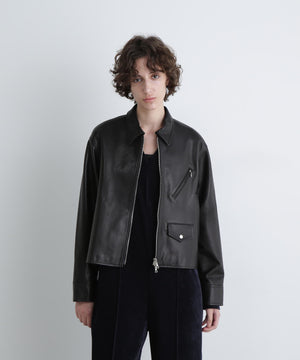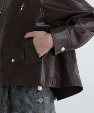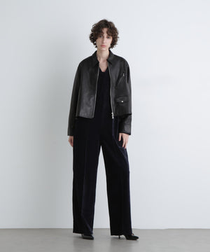 そぎ落とされたディテールのミニマルなライダースジャケットでテントラインシルエットがポイントです。