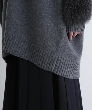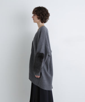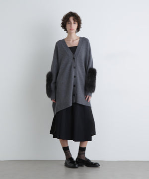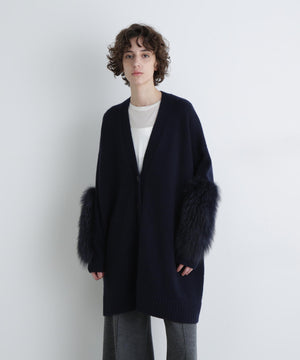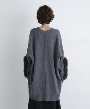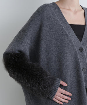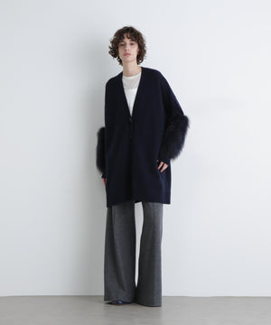 着丈の長いややコクーン型のシルエットで袖部分にFOXファーが取り付けられています。