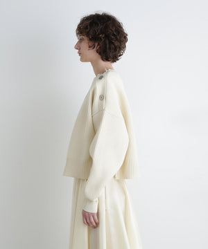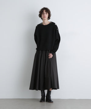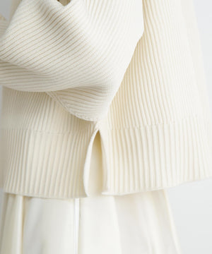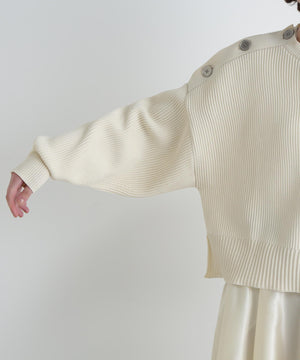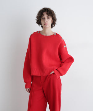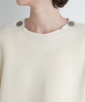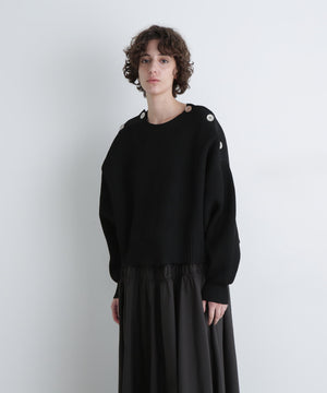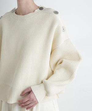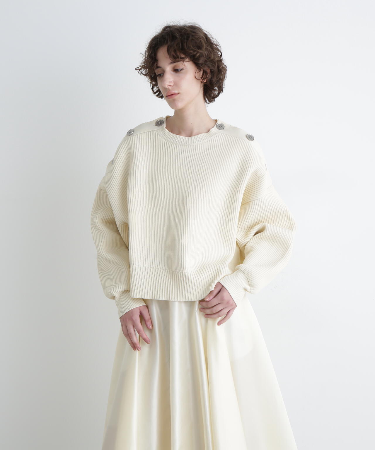 ポリエステルの合繊素材で軽く仕上げられたニットプルオーバーです。