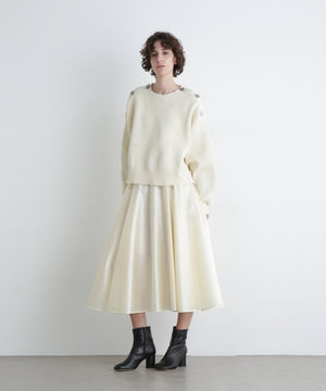 ボリューム感と高伸縮性のあるポリエステルにソフト加工を施して多本取りにした素材で仕立てました。