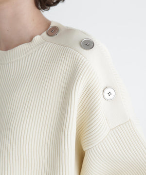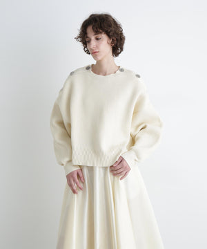 両肩に取り付けられたオリジナルロゴ入りメタルボタンがポイントです。