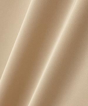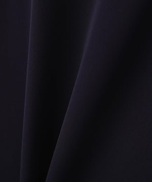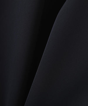 トリアセテートが持つ、ドライタッチでしなやかなドレープ性、上品な光沢、発色性に優れたストレッチツイル素材と、アセテートのようなポリエステルを使用し、レギュラーポリエステルでは表現できない反発感と落ち感が特長のダブルサテン素材で仕立てました。