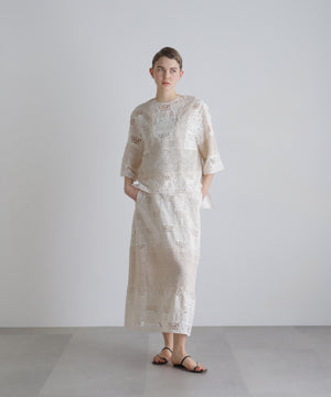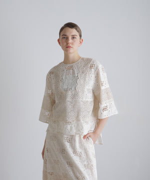 刺繍レースを施したラティスエンブロイダリーブラウス