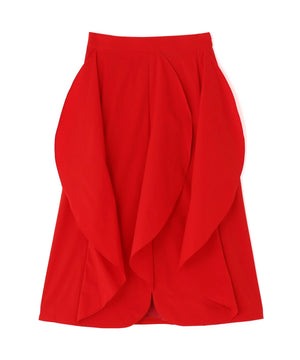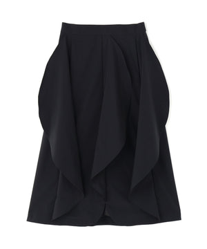 花びらの様な丸みを帯びたアウトラインのラッフルパーツを縦につけたスカート。