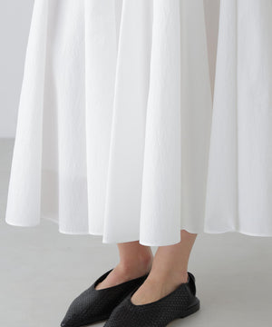 マットでペーパーライクな風合いが特徴のナイロンフレアースカート