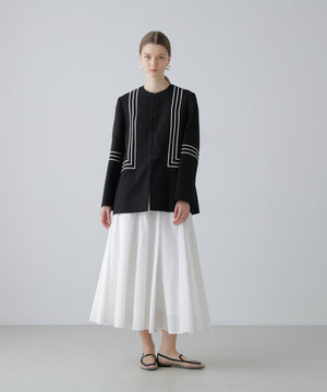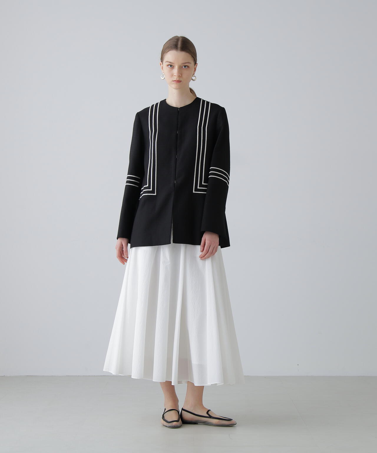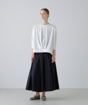 沢山の切り替え部分に三角のパーツをはめ込み、さらに分量感を出したデザインスカートです。