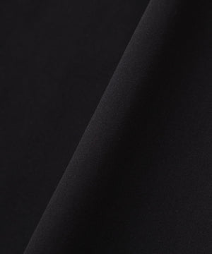 極細のポリエステルを46ゲージと言う非常に密な編み機にて編み上げることで、布帛の様な張り感を持たせた、適度な伸縮性のある非常に軽いジャージ素材で仕立てました。