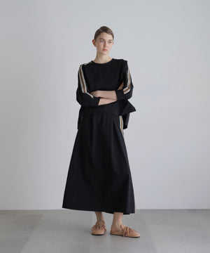 両サイドのラインが縦のラインを強調し、Aラインシルエットを美しく見せます。