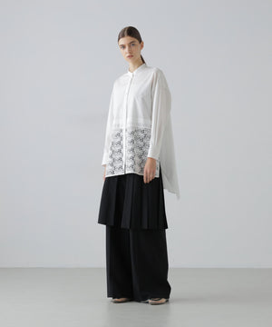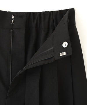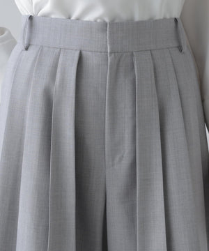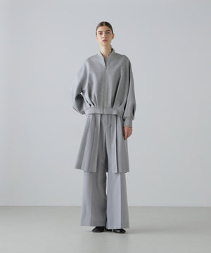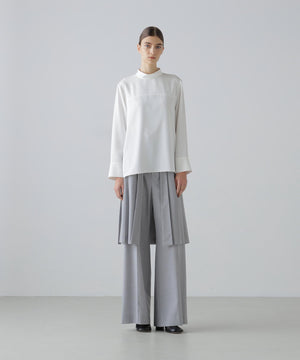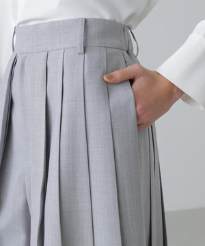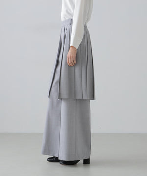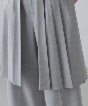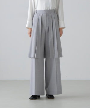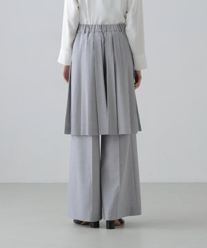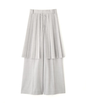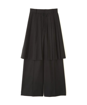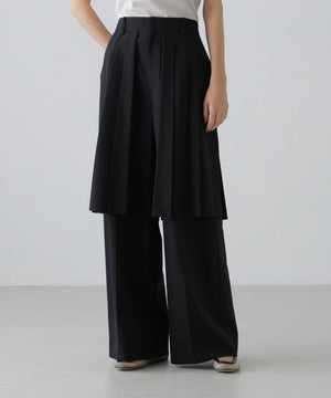 車ひだのプリーツ加工が施されたスカートとワイドパンツをレイヤーしたようなデザインパンツになります。