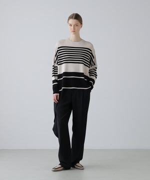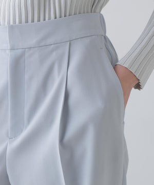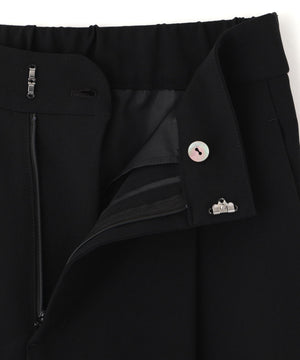 ストレッチ性のあるバックサテン素材で仕立てたジョーゼットパンツ