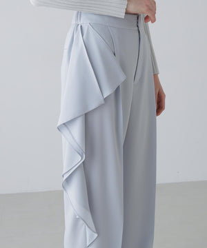 アシンメトリーデザインでラッフルのパーツが大胆に挟み込まれています。