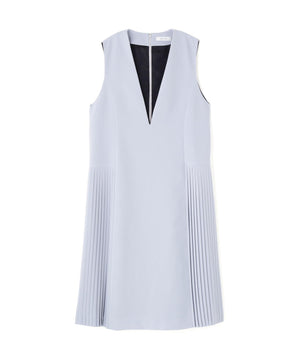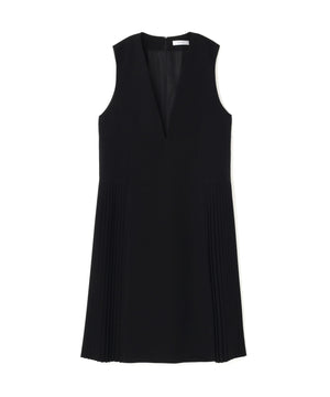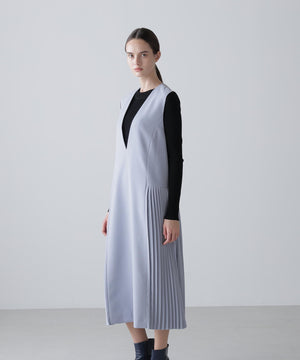 サイドに同素材のプリーツパーツが挟み込まれ、上品なワンポイントのデザインドレスになっています。