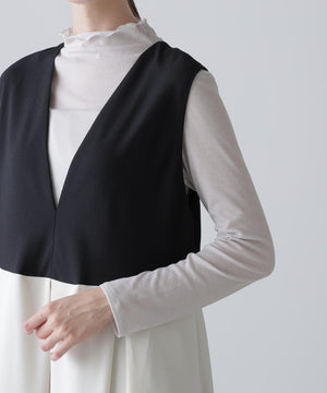 3本の糸を1本に撚ることで、糸に丸みを出しながら表情がある、ドレープ性に富み、伸縮性もある素材で仕立てました。