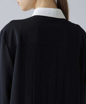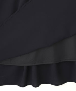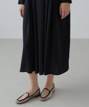 フロントに入ったタックがウエスト下で縫い外されフレアデザインになっています。