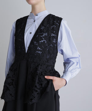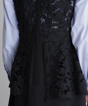 レースはペプラムのようになっており、上品な印象の1着です。