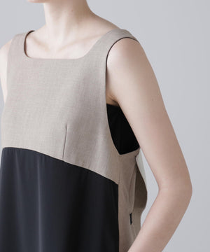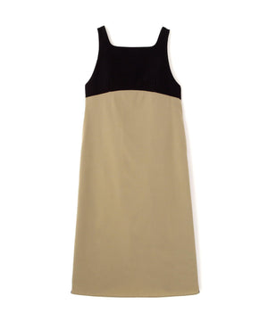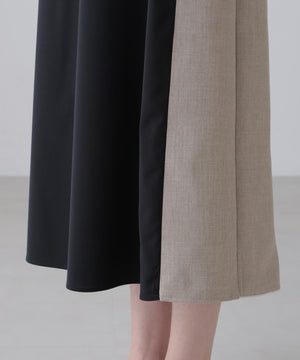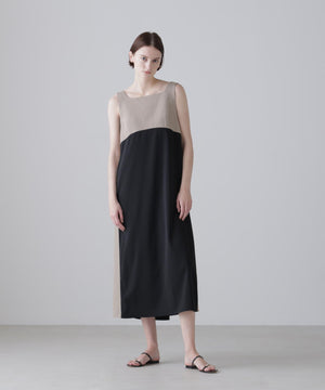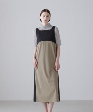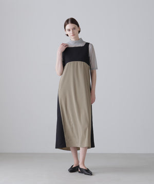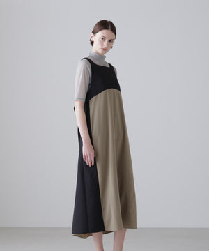 2重織のしっかりした素材と薄く落ち感のある素材をドッキングしたジャンパースカートです。