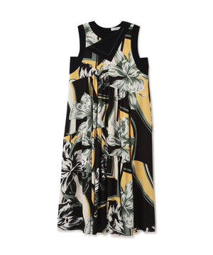 ドレープ性のあるジョーゼット素材に大胆な花柄のプリントを施し軽く仕上げられたドレスです。