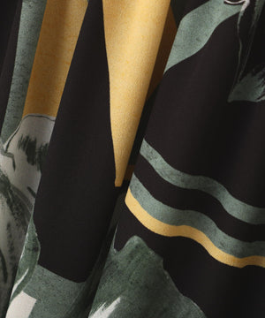 しなやかなドレープ性のあるジョーゼット素材に、大胆な構図のプリントを施した素材で仕立てました。