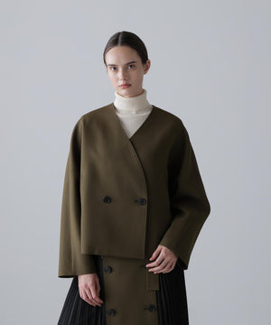 独特のハリ感が特徴のマトラッセトリプルクロスノーカラージャケット